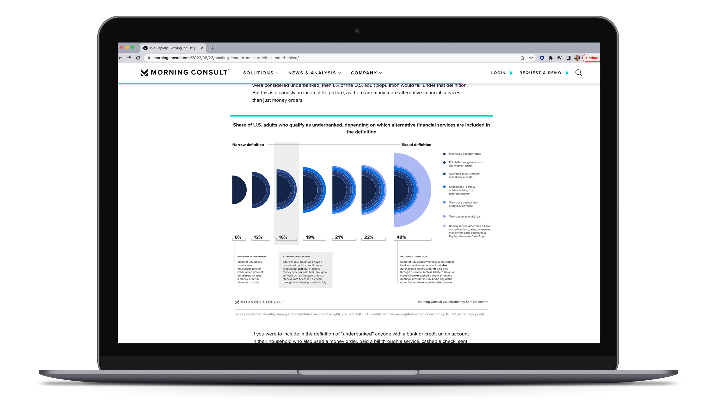 Work with novel survey data to make reporter's findings clear and engaging, while maintaining the Morning Consult brand.